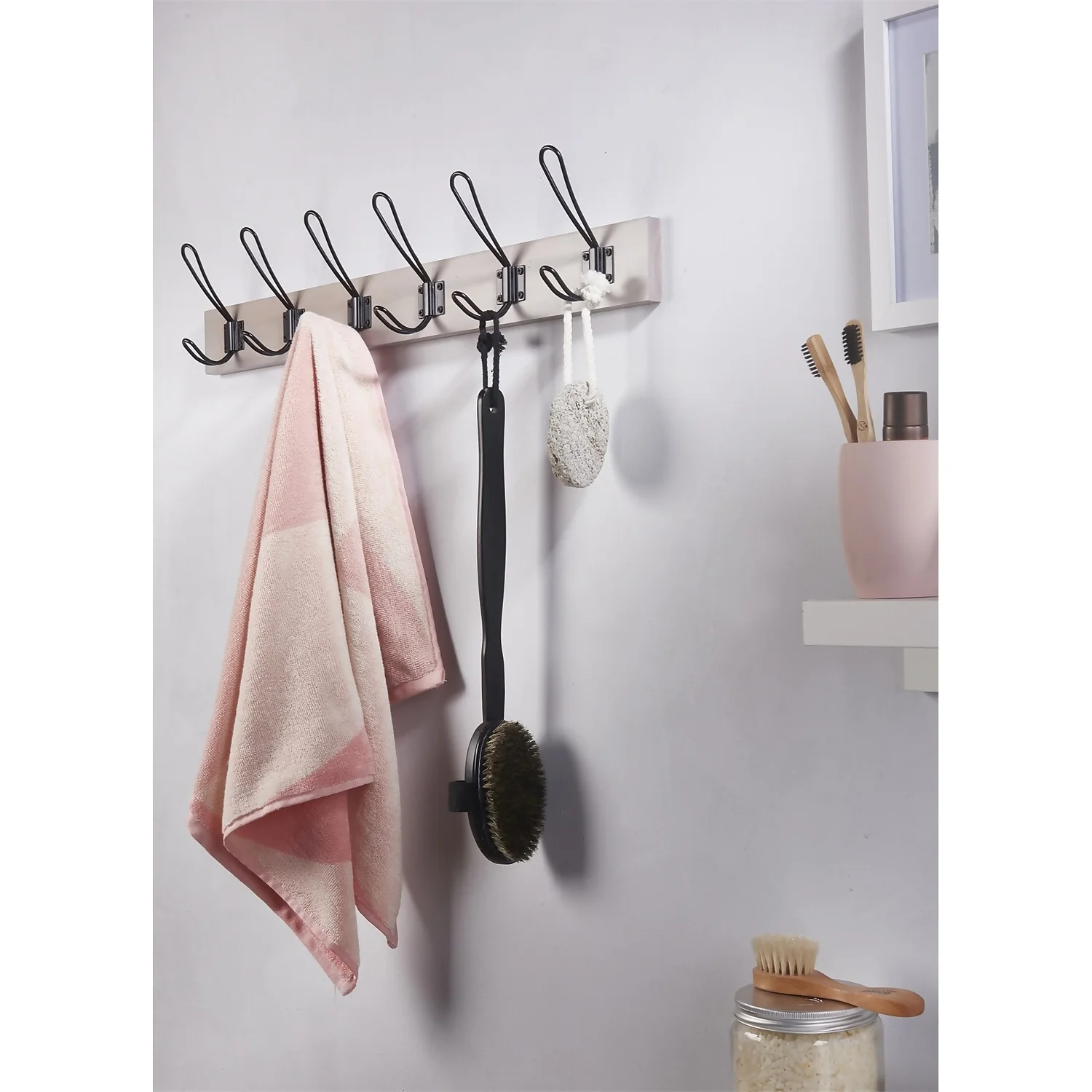 Grey ash wood effect coat rail featuring 6 wire style black double hooks. A modern design to fit a contemporary look.