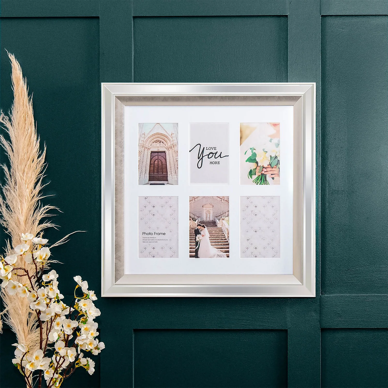This multi aperture frame features an elegant mirror frame. The perfect frame to store your most treasured memories.