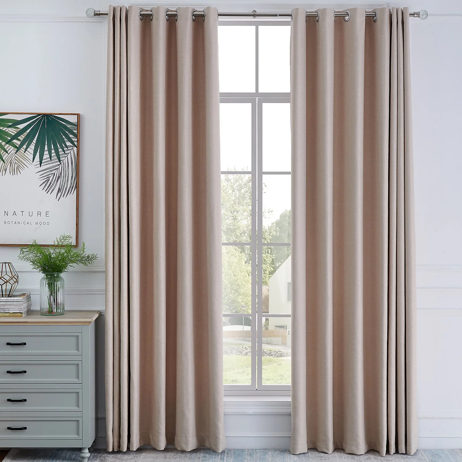 Complete curtain pole set with stud finial. Suitable for use with lightweight curtains.