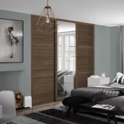 Shaker 3 Door Sliding Wardrobe Kit Walnut Panel / Mirror With Walnut Frame (W)2136 X (H)2260mm