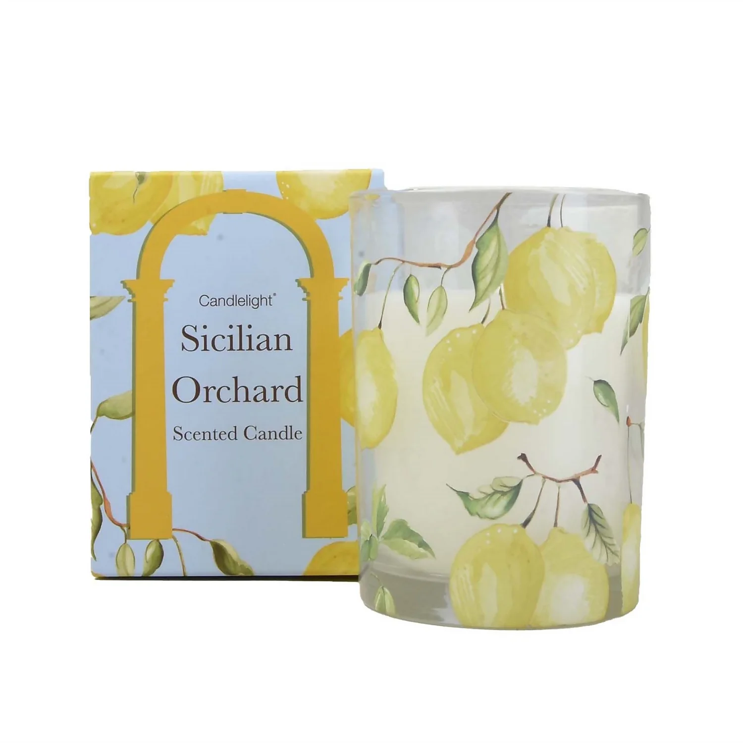 Small Wax Filled Pot Candle Is Pakced In A Stunning Sicily Inspired Gift Box, With The Pot Itself Being Printed In A Themed Print To Match
