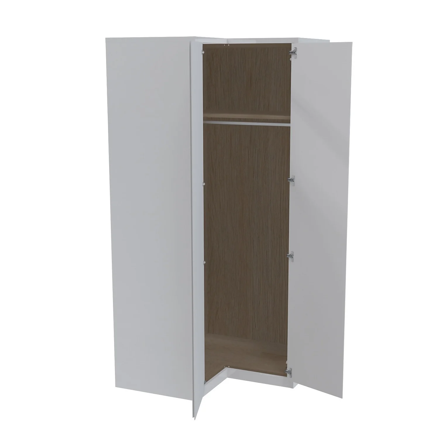 - The carcass features adjustable feet for levelling on uneven floors and is supplied with the instructions and components to secure to the wall (wall plugs not supplied). The corner wardrobe is a storage must have, it features five internal shelves and ample hanging space. A real solution for difficult bedroom spaces