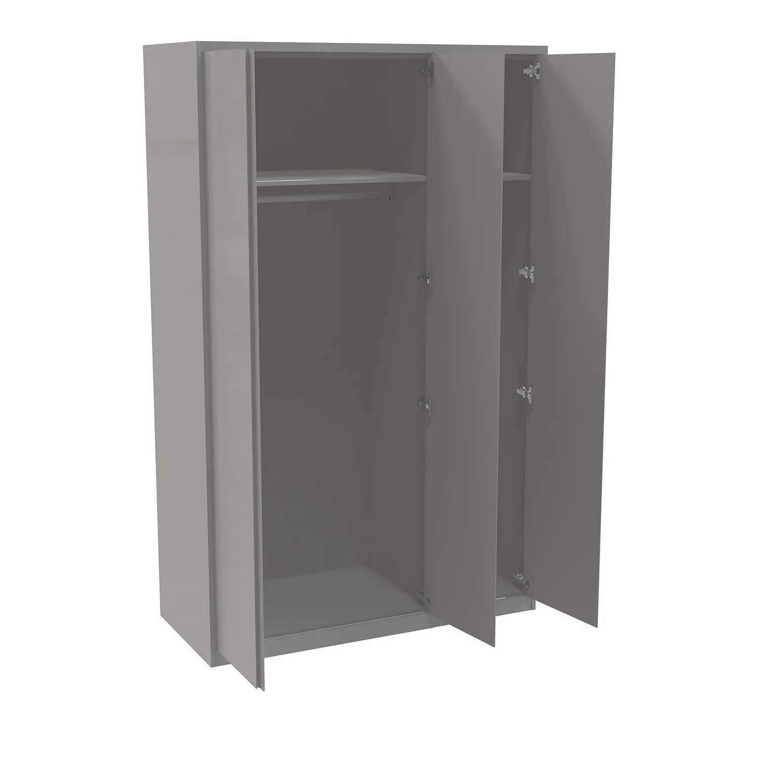 The House Beautiful bedroom range is exclusive to Homebase and offers a selection of different finishes and storage configurations to suit your needs. With a range of carcass colours and contrasting door designs, you can select the look to fit your bedroom aesthetic. The House Beautiful range now includes the fully fitted look with this combination pack which includes the wardrobe, end panels, plinth and cornice, meaning you can complete your bedroom with a luxury look. Coordinating chests of drawers are also available separately. This triple wardrobe (1 x double unit and 1 x single unit) features a grey internal carcass and includes end panels, plinth and matching cornice all in a finish to match the beautiful luxe gloss grey handleless doors. The wardrobe features premium soft close clip-on Blum hinges, two shelves and two hanging rails. You can customise your wardrobe with our additional internal storage options (available separately) including internal drawers, shelves, dividing shelves and extra hanging rails.