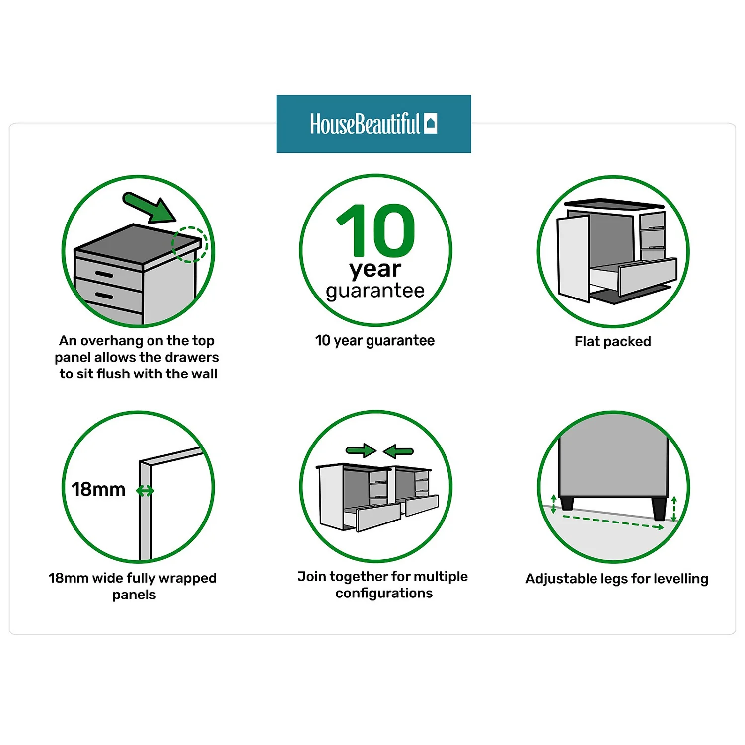 - A fitted look can be achieved using the fitting supplied to connect two chests of drawers together