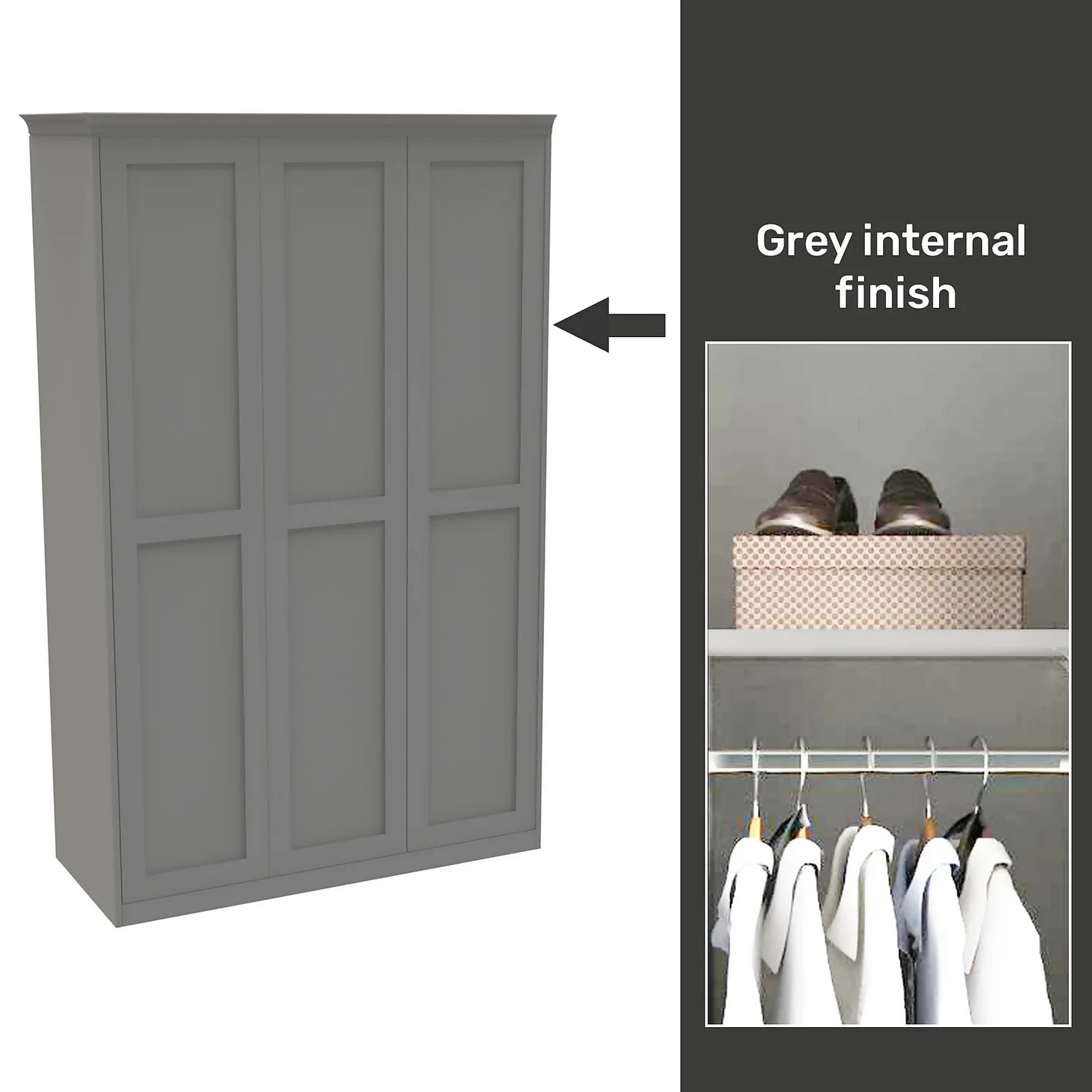 - A fitted look is achieved by using clad on panels, plinth and cornice which are all included with this wardrobe. All the elements that clad the internal grey carcass (clad on panels, plinth and cornice) are a perfect match to the matt grey shaker door