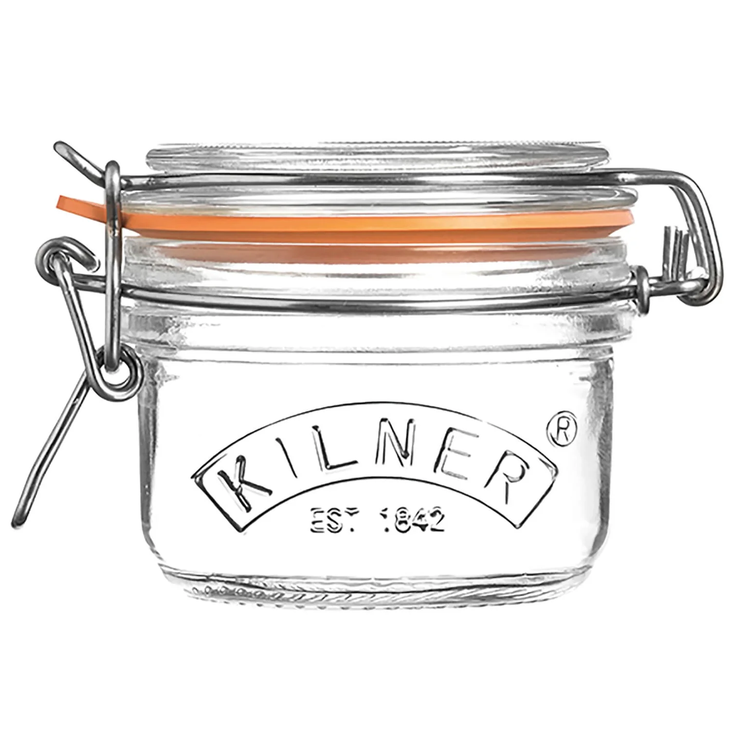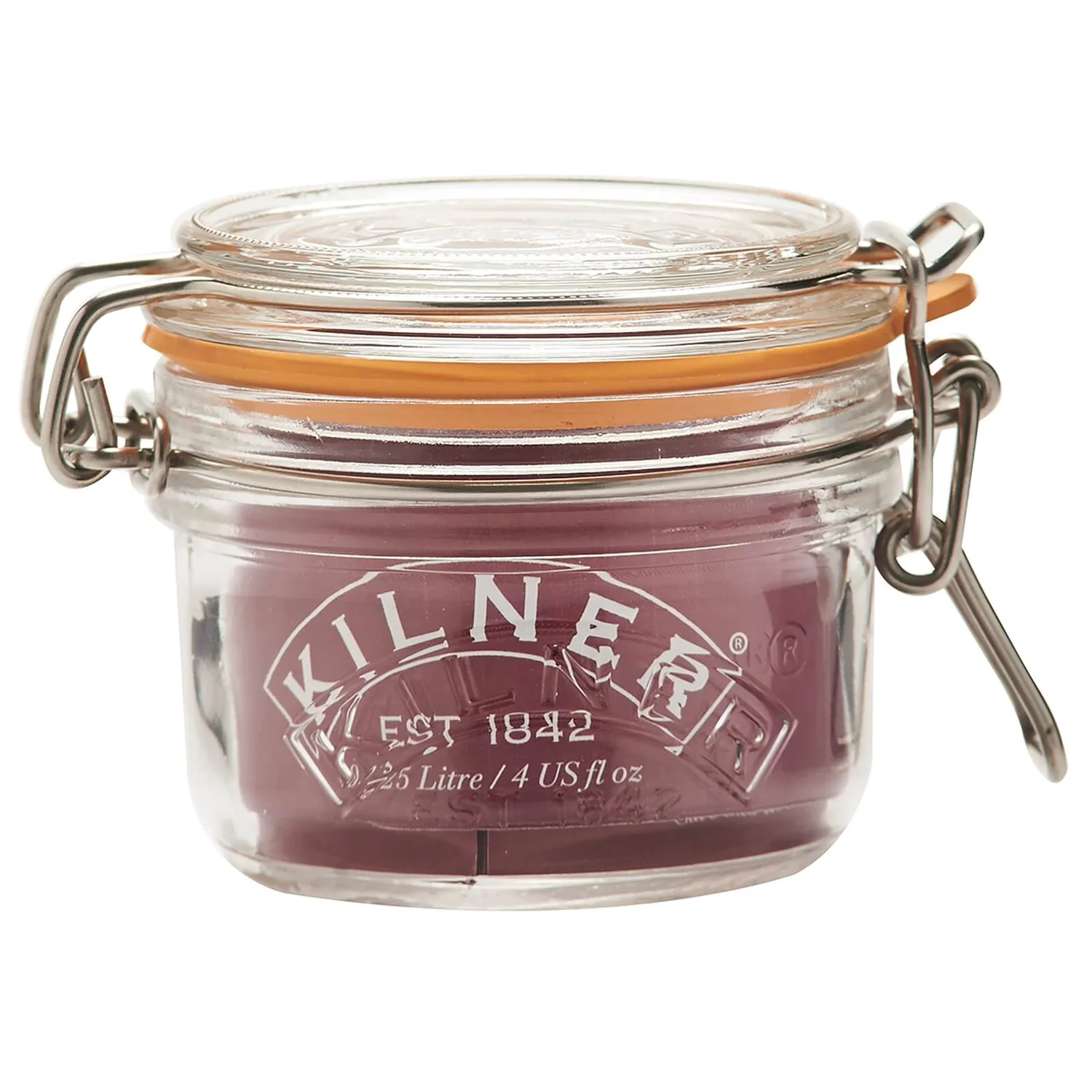 Kilner Round 125ml Clip Top Glass Storage Jar has the Kilner brand embossed in the front and is finished with an orange rubber seal. The jars are perfect for storing dry foods stuff and also preserving fruits, jams and chutneys.