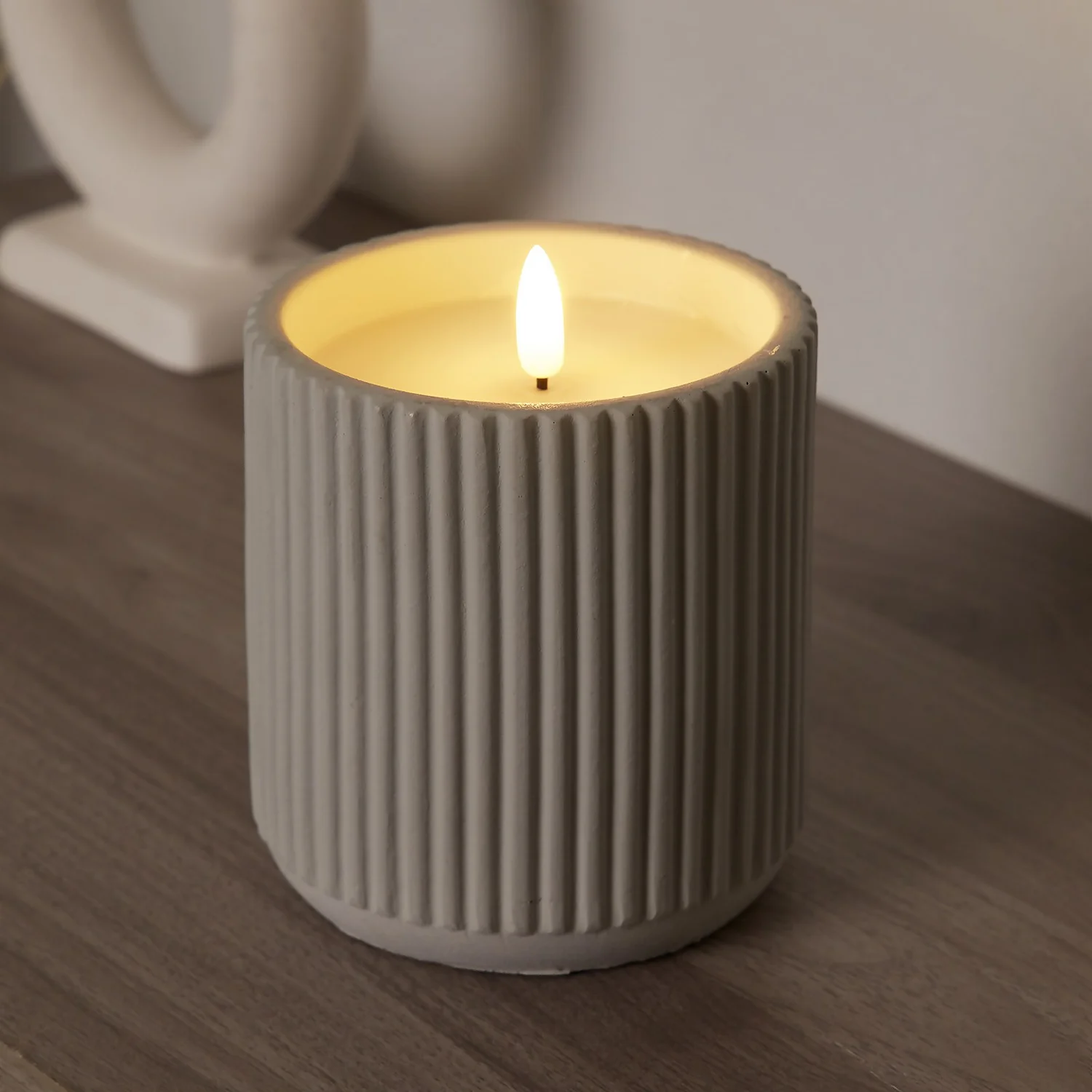 Bring a touch of style to any small space with this grey concrete candle with on-trend ribbed detailing.