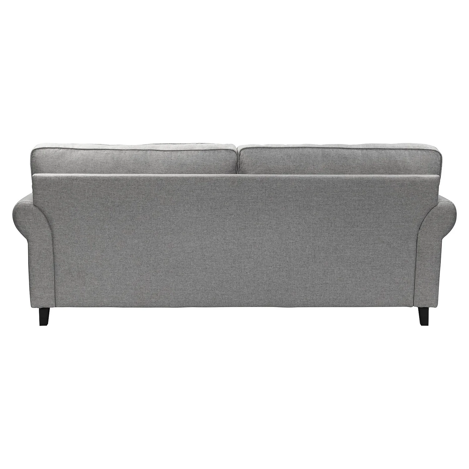 Make the everyday a little more elegant with Linea. Simple yet stylish, this grey 3 seater sofa has a traditional design complete with classic scroll armrests and tapered dark wood legs. The foam and fibre filled cushions are upholstered in woven fabric for added comfort.