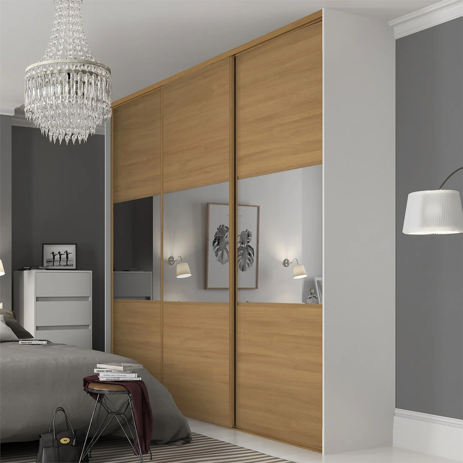 Linear Sliding Wardrobe Door 3 Panel Oak / Mirror With Oak Frame (W)610mm