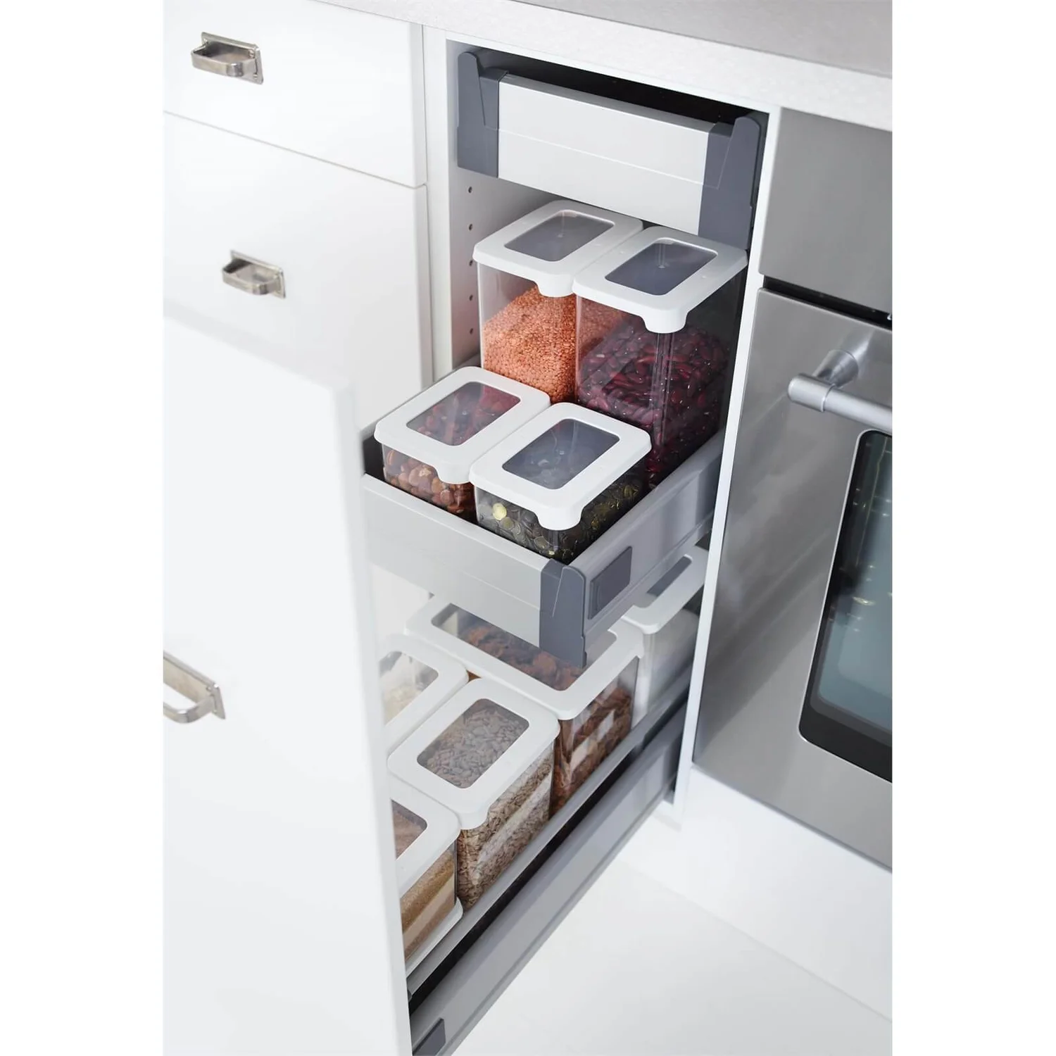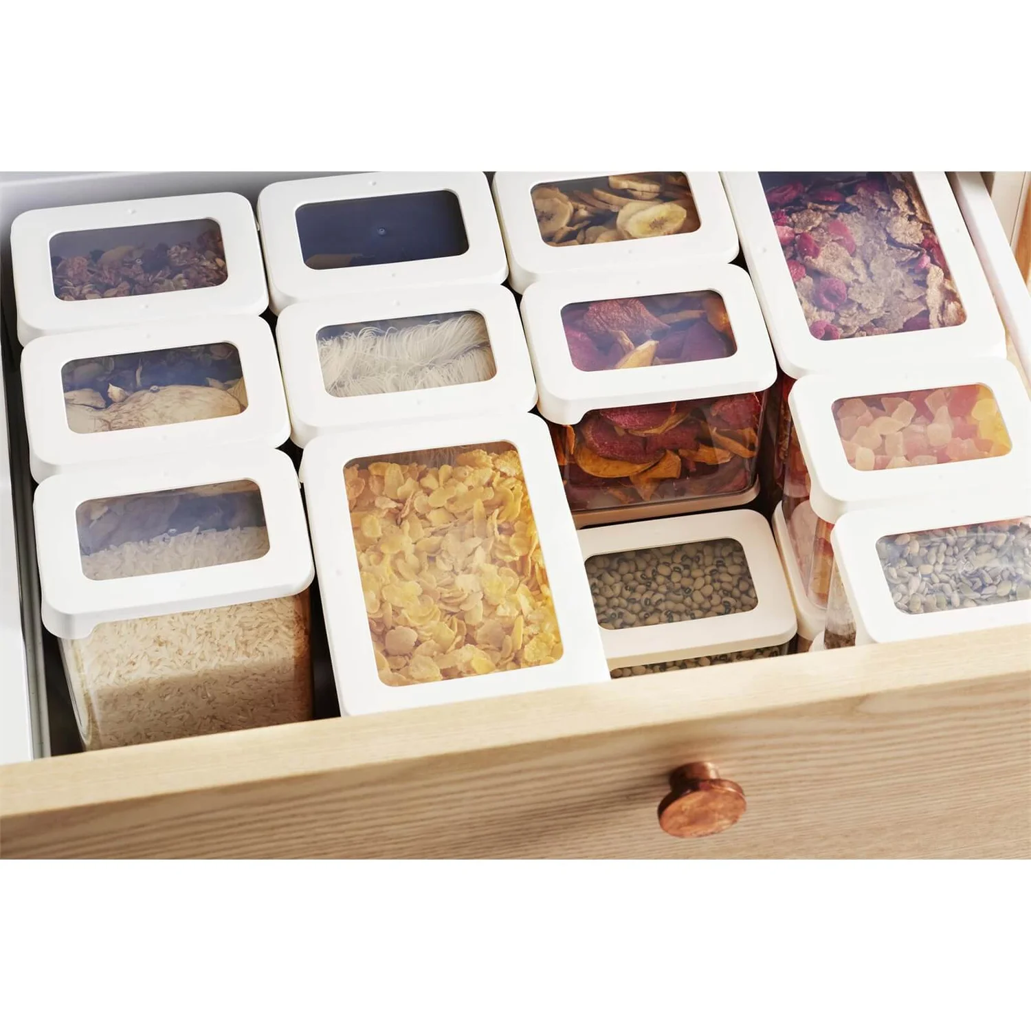 Airtight, stackable and modular dry food keeper for the pantry. Transparent container with window in the lid shows the content from the side and from the top – easy to see what?s inside. Suitable for e.g. nuts and seeds, pasta, cereals and flours.