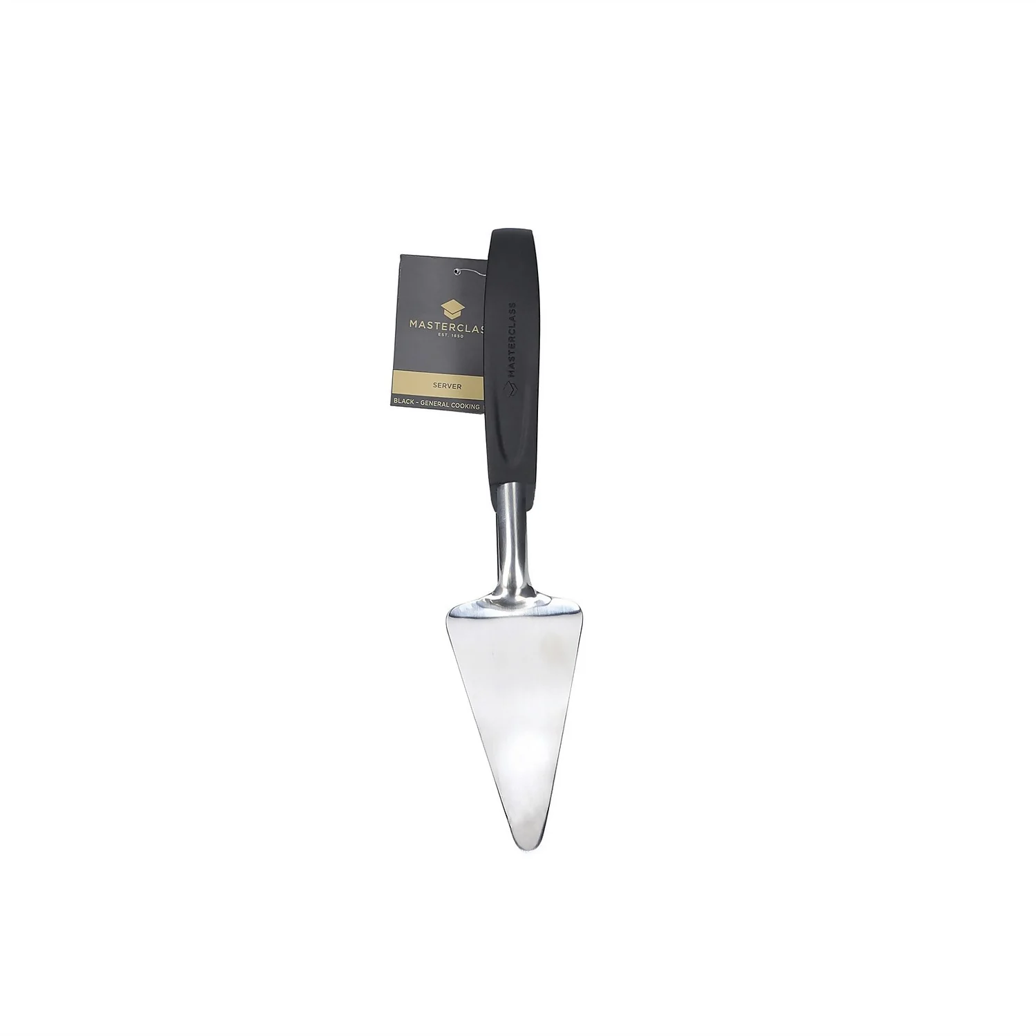 This cake slice comes from MasterClass Food Tools, a range of super-robust, problem-solving utensils, designed to conquer busy cooking environments. These catering-quality tools are packed with unique, intelligent features that make them equally at home in domestic and professional serving situations. Everything, from its built-in surface rest, to its comfort-grip handle, is designed to help you serve swiftly and hygienically, so nothing can put you off your stride. The server is made of sturdy 18/10 stainless steel and high-quality, heat-resistant nylon. It?s available in two colours: black, for general cooking, and green, for vegetarian cooking.