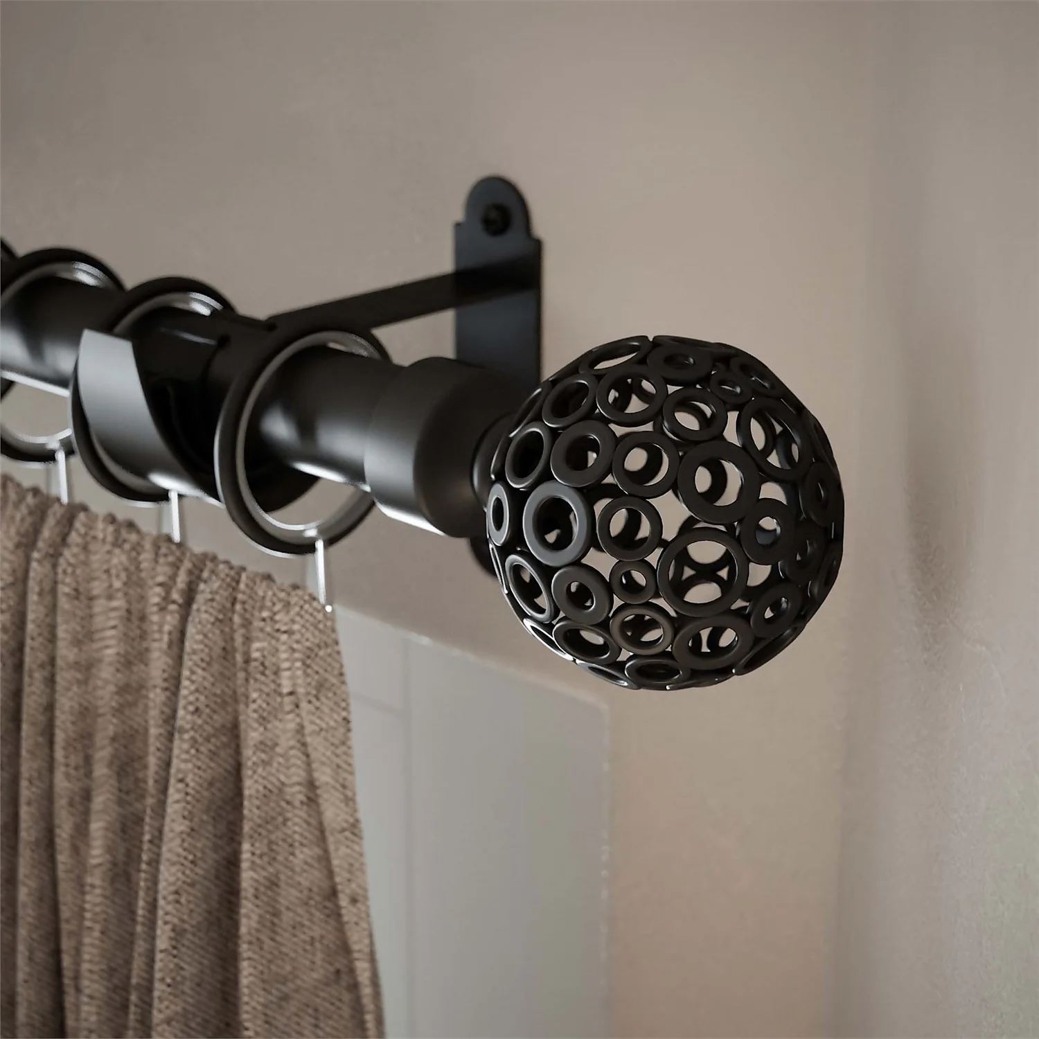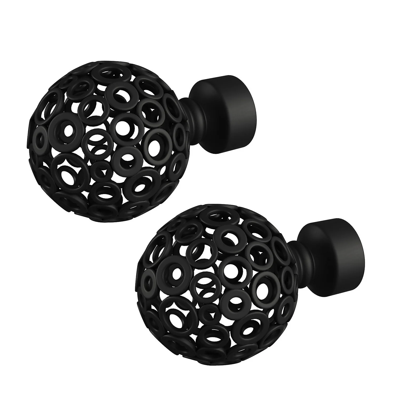 Rothley Baroque 25mm Pattern Orb Curtain Pole Finials (Pair) – Matt Black