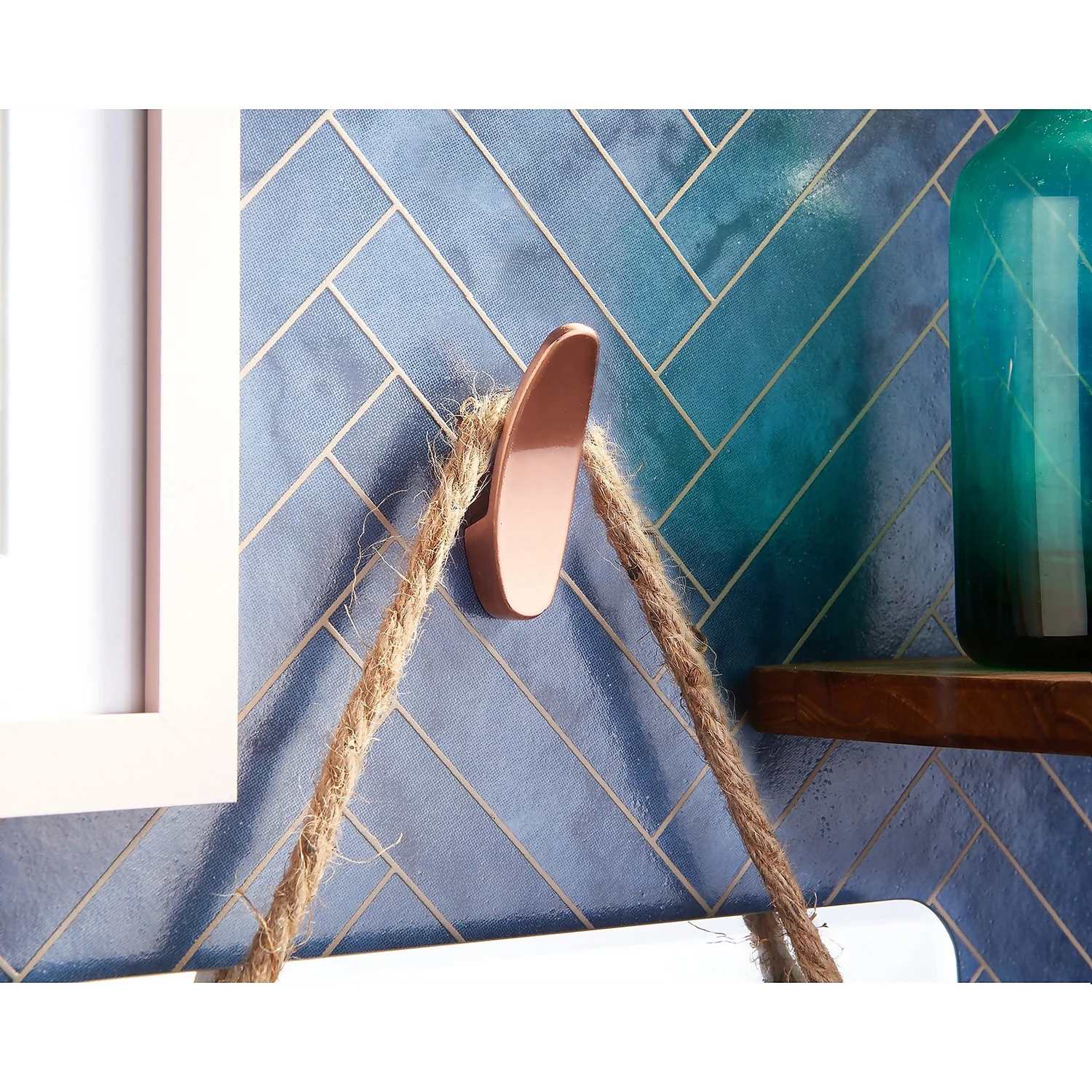 Add some minimalist style with this art deco single hook with a fashionable brushed copper finish. Back fixed so no visible screws when fitted.
