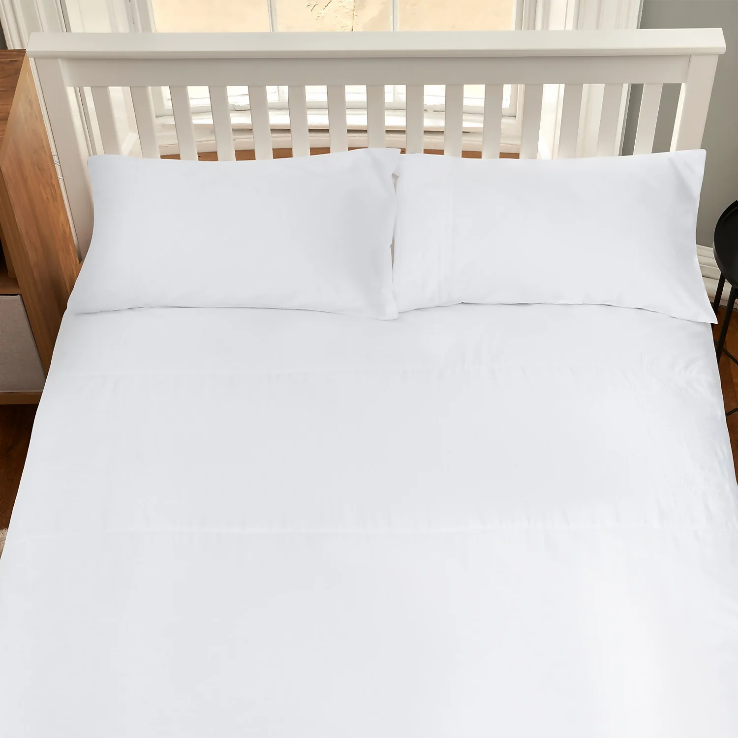 - Pair with the matching White King Fitted Sheet and Housewife Pillowcase Pair in the Easy Care Percale range